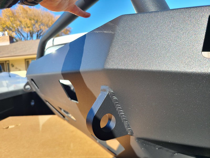 - 3/4" thick shackle mounts that extend through the entire bumper