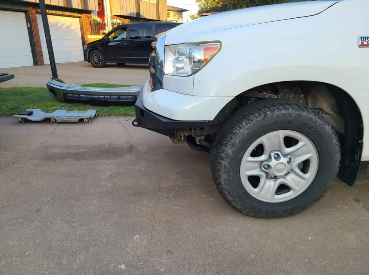 Fits 2007-2021 Toyota Tundra. I'm an engineer and I designed and had laser cut and press broke at a local shop to test fitment. Own a bumper not made in China. No shipping costs or long lead times to deal with. I've successfully tack-welded 4 of these bumpers on the workbench, and they fit perfectly on the truck, no need to tack-weld them on the truck itself. Everything is tabbed for perfect alignment.